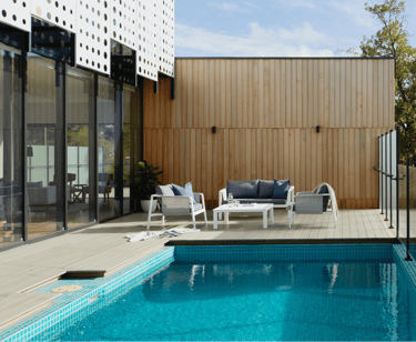 Rénovation d'une maison dotées de la climatisation, d'une piscine privée, de trois chambres avec salle de bains et d'un spacieux salon-cuisine ouvert.